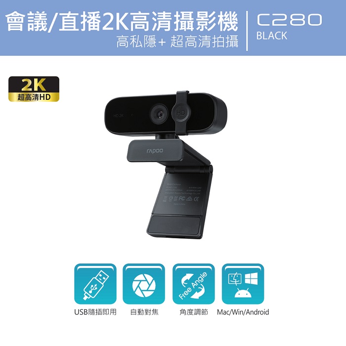 按以下按鈕新增 RAPOO C280 2K USB 自動對焦網路攝影機- 黑 到喜愛產品列表