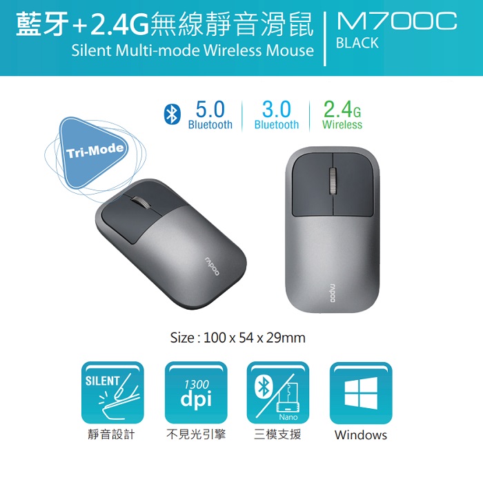 按以下按鈕新增 RAPOO M700C 三模靜音 2.4G+BT+TYPE-C 滑鼠 (黑) 到喜愛產品列表
