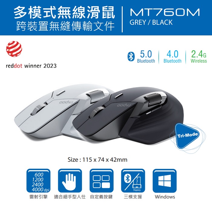 按以下按鈕新增 RAPOO MT760M 多模式無線靜音小手型人體工程滑鼠 (灰/黑) 到喜愛產品列表