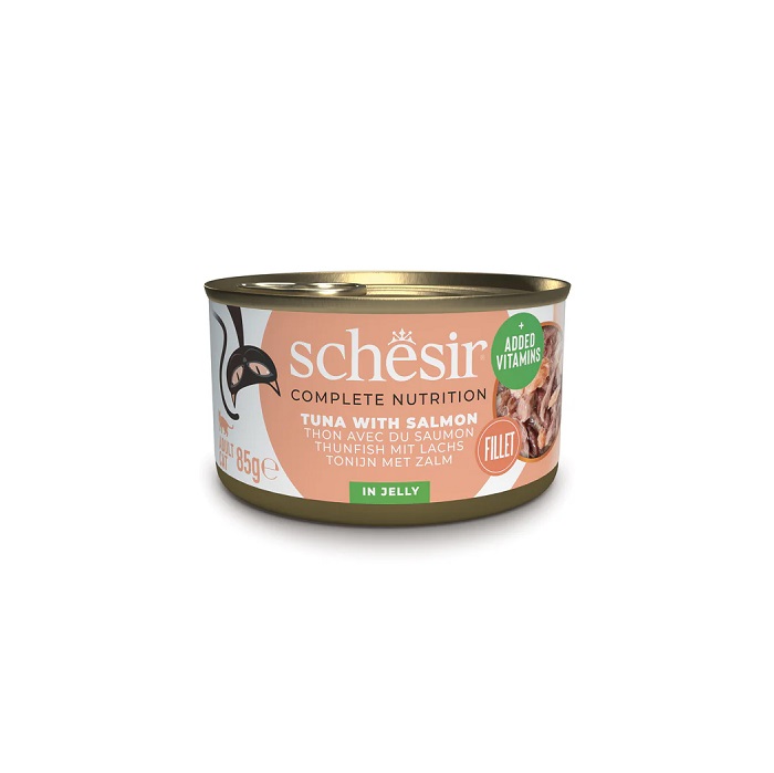 Schesir 提供貓咪所需的所有必需營養素,同時保持令人無法抗拒的美味,鮮嫩的蒸鮪魚片搭配鮭魚凍,帶來天然美味的絕妙組合,即使是最挑剔的貓咪也會愛不釋口。