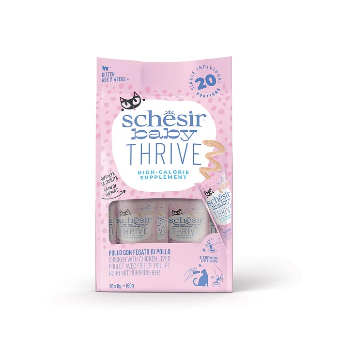 這款能量補充劑專為體重過輕或正在消瘦的幼貓設計,以真正的雞肉片為基底,添加營養美味的雞肝,製成柔滑的慕斯狀,有助於幼貓快速生長。